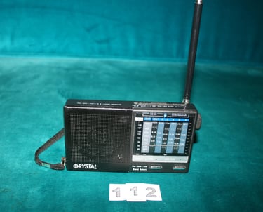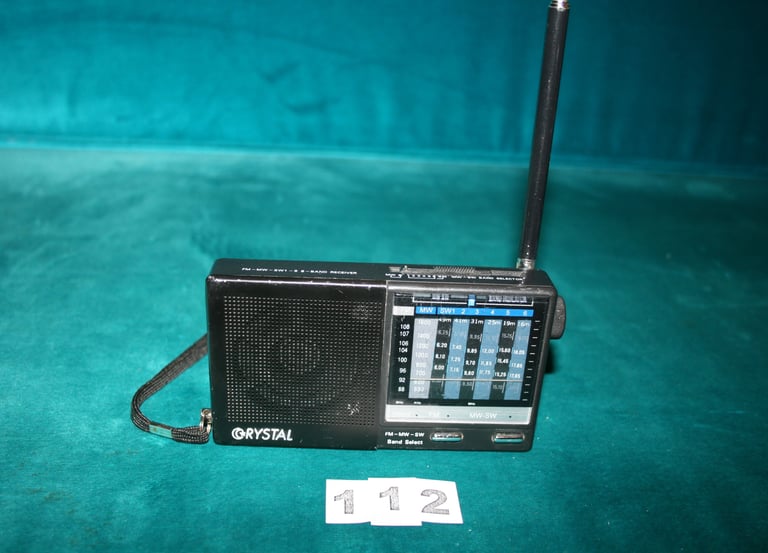 1990’ların çok bantlı “world receiver” sınıfına ait olan Crystal marka bu mini radyo, FM, MW ve altı ayrı SW bandını destekler. Taşınabilir yapısı, pil ile çalışması ve kısa dalga yetenekleri sayesinde dönemin gezginleri, nöbetçileri ve radyo meraklıları arasında oldukça yaygın kullanılmıştır.