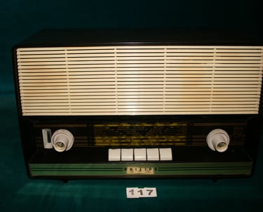 Philips’in 1958–62 döneminde ürettiği bu çok bantlı ev radyosu, dönemin klasik Avrupa tasarımını yansıtır. Geniş ızgaralı ön paneli, piyano tipi tuşları ve güçlü kısa dalga alıcısı ile 1960’ların popüler aile radyolarından biridir.