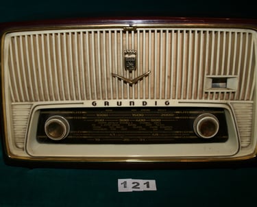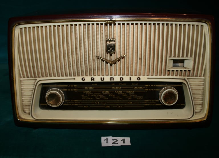 Bu Grundig radyo, II. Dünya Savaşı sonrası Avrupa’da yaygınlaşan yüksek kaliteli ev radyolarının tipik bir örneğidir. Türkçe istasyon isimleri bulunan ön paneli, modelin Türkiye pazarı için özel olarak hazırlandığını göstermektedir. Lambalı süperheterodin yapısı sayesinde dönemine göre net ve güçlü bir ses sunar.