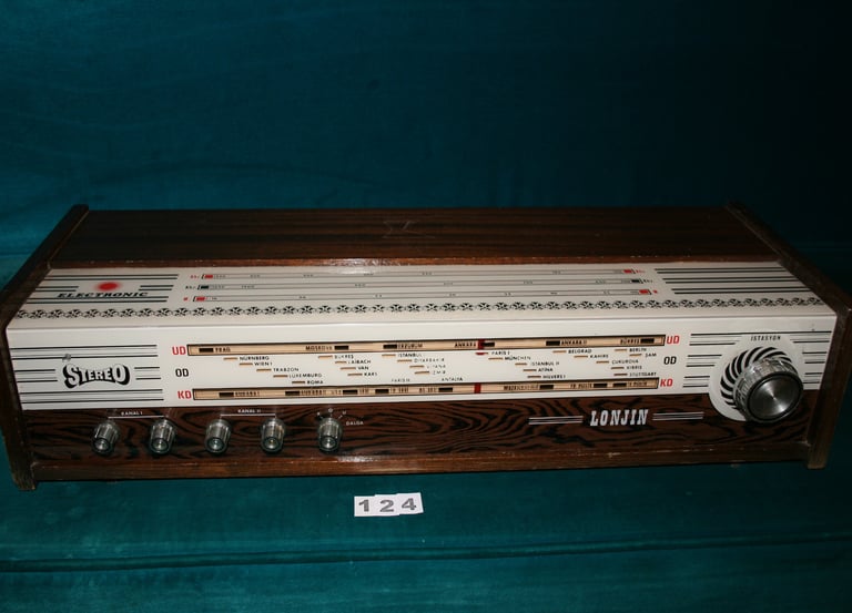 Lonjin markalı bu stereo radyo, 1970’lerde Uzak Doğu elektronik üretiminin yükselişini temsil eder. Transistörlü yapısı sayesinde daha hafif, dayanıklı ve ekonomik olan bu cihazlar, çok bantlı alımıyla dinleyicilere dünyayı evlerinden takip etme imkânı sunmuştur.