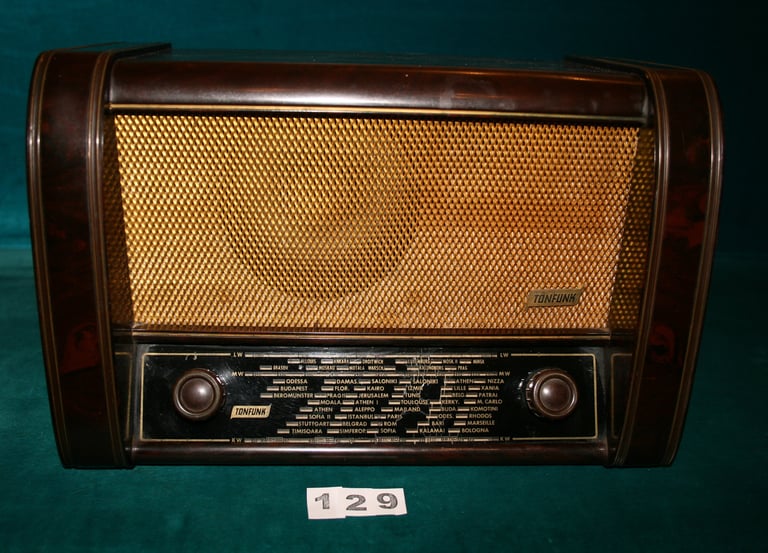 Tonfunk lambalı radyo, savaş sonrası Almanya’da radyonun yeniden günlük hayatın merkezine dönüşünü simgeler. Süperheterodin yapısı sayesinde uzak ülkelerin yayınlarını dahi evlere taşıyan bu cihaz, müzik, haber ve dünyanın sesini tek bir ahşap kabinde buluşturmuştur.