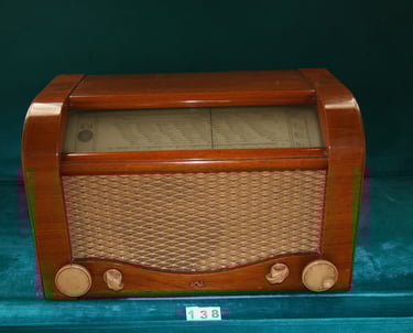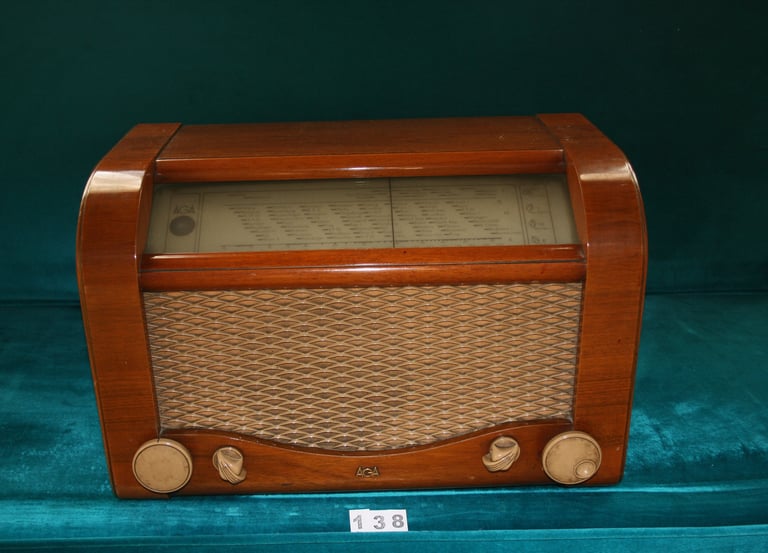 İsveçli AGA’nın bu lambalı radyosu, II. Dünya Savaşı sonrası Avrupa’da evlerin yeniden sesle dolduğu yılları temsil eder. Sağlam ahşap kasası ve sade İskandinav tasarımıyla, haberlerin ve müziğin aile bireylerini tek bir odada buluşturduğu dönemin günlük yaşam tanığıdır.